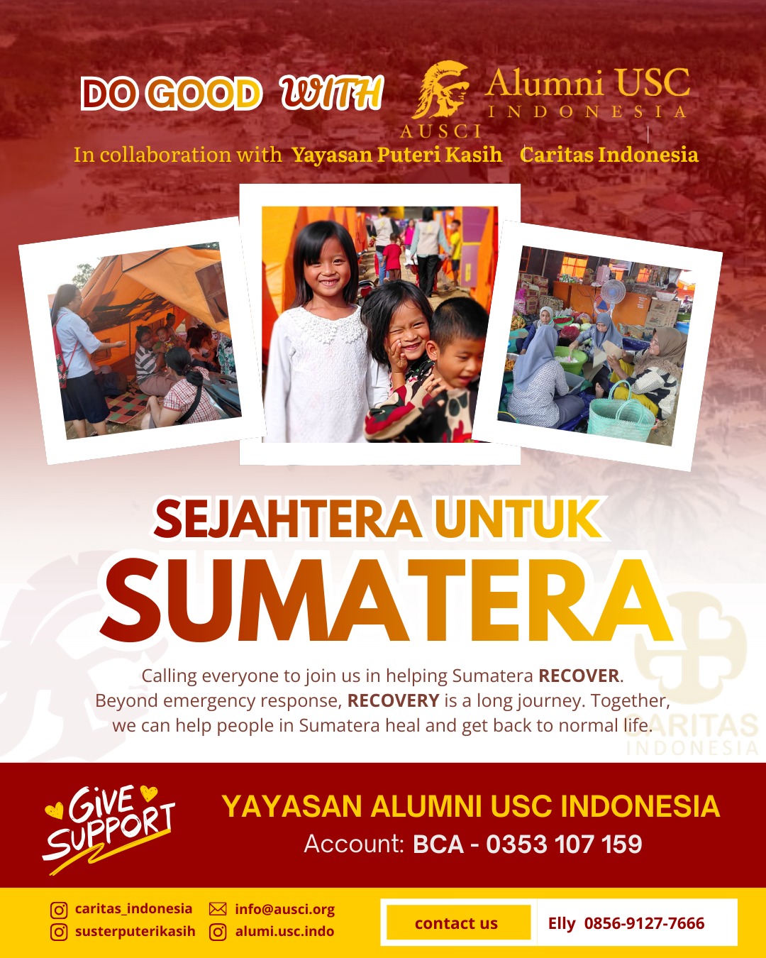 AUSCI Care would like to invite Trojans and everyone to take part in supporting Sumatera’s post-disaster recovery. Beyond emergency response, recovery is a longer journey—rebuilding homes, restoring livelihoods, and helping communities regain a sense of normal life and dignity.